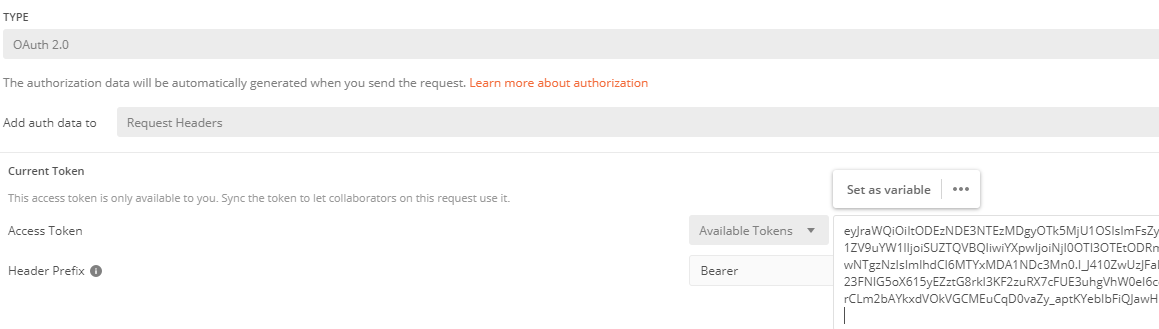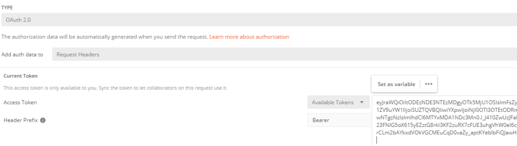 20. All is working just as you describe. I receive a token and paste it into the Access Token. When sending the the GET request an error 401 “Invalid signature in authorization header” Any ideas would be helpful. Thanks