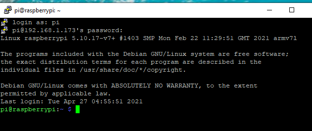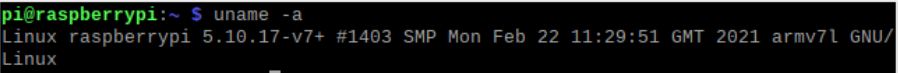 Linux raspberrypi 5.10.63-v7+ #1496 SMP Wed Dec 1 15:58:11 GMT 2021 armv7l GNU/Linux
