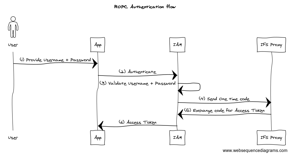 If your app cannot render a browser and popup IFS Login dialog to authenticate the user, then there’s a choice of using the ROPC authentication. In this way, instead of authentication in IFS or 3rd party Identity provider, username and password is being sent directly from the app to the IAM which in return sends a access token.