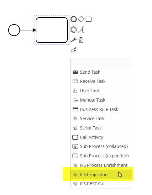 In the IFS projection properties, select the Custom Projection and the action created above.