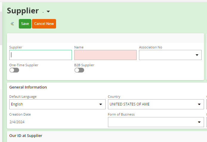 Go back to Supplier page and Add New. Now you should get the Country and Default Language pre-filled.