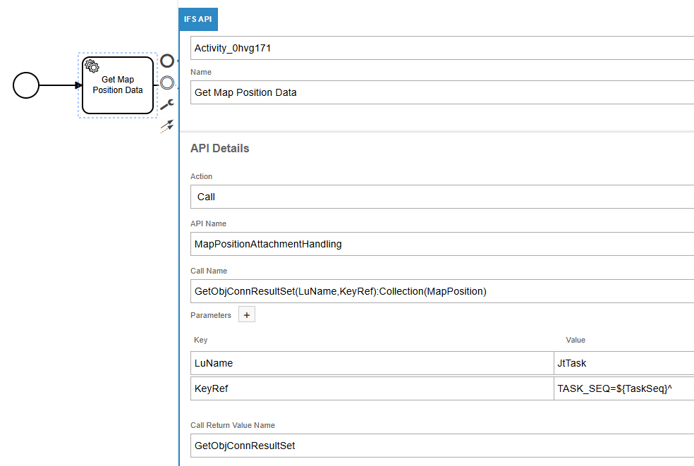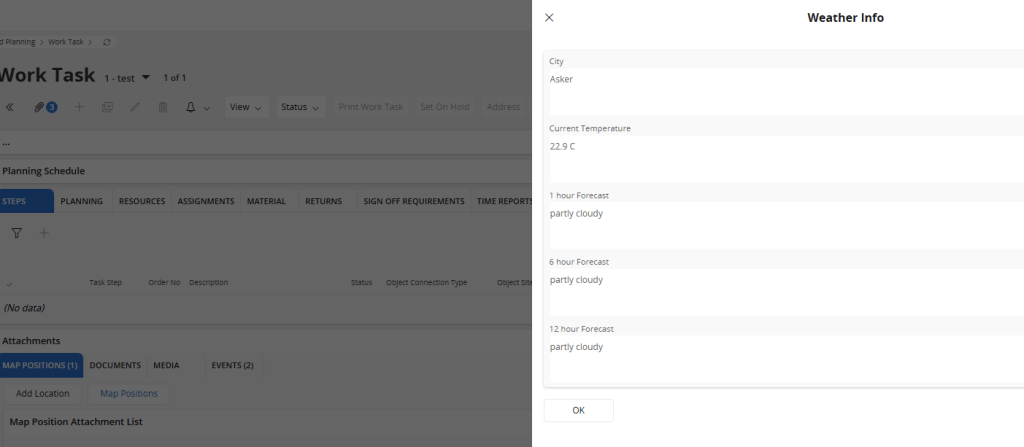 As I mentioned earlier, each work task has it’s location set as a Map Position attachment. After some debugging we were able find the IFS Projection call to get the Map Positions data.