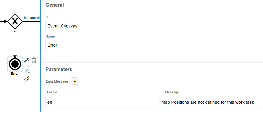 We added some validations to check if the work task has a map position defined. It was done using a simple script task which checks the length of the GetObjConnResultSet variable to see if it has any values.